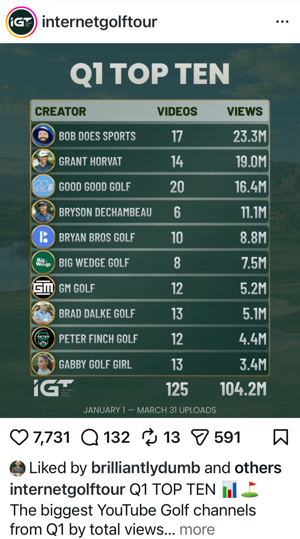 If you watched the Internet Invitational — and 26.6 million people did — you are our people. Influencer and creator golf isn’t a novelty anymore, it’s a rabbit-hole. It’s a legitimate corner of the sport with real audiences, real stakes, and real competition, but most importantly a light-hearted everyman look at golf inspiration. Not the hyper vanilla broadcat presentation of the PGA Tour. The itchy question nobody had a clean answer to was: who’s actually winning the space week to week?